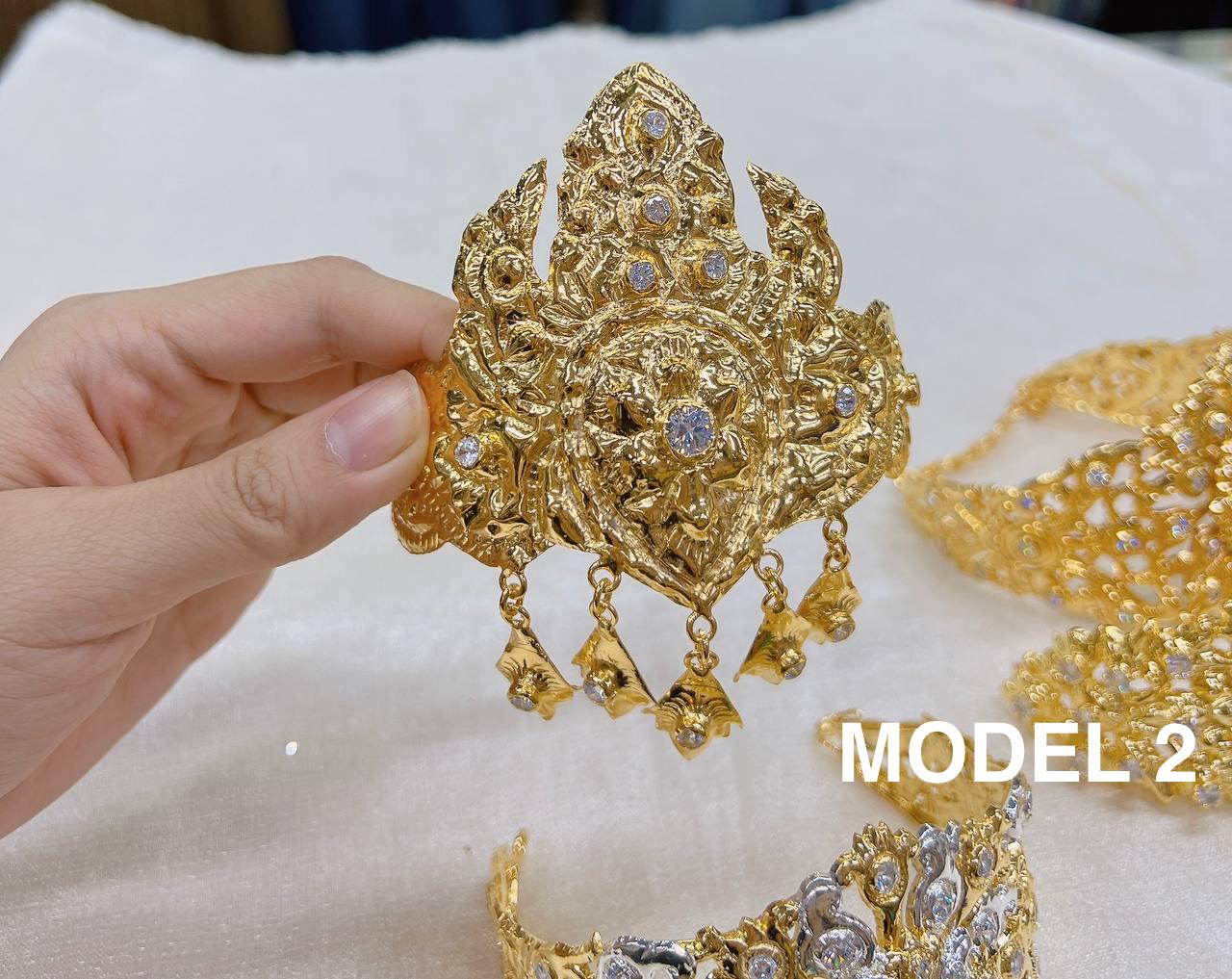 Symbole de grâce porté par les danseuses et mariées royales, chaque pièce unique perpétue l'art khmer authentique.