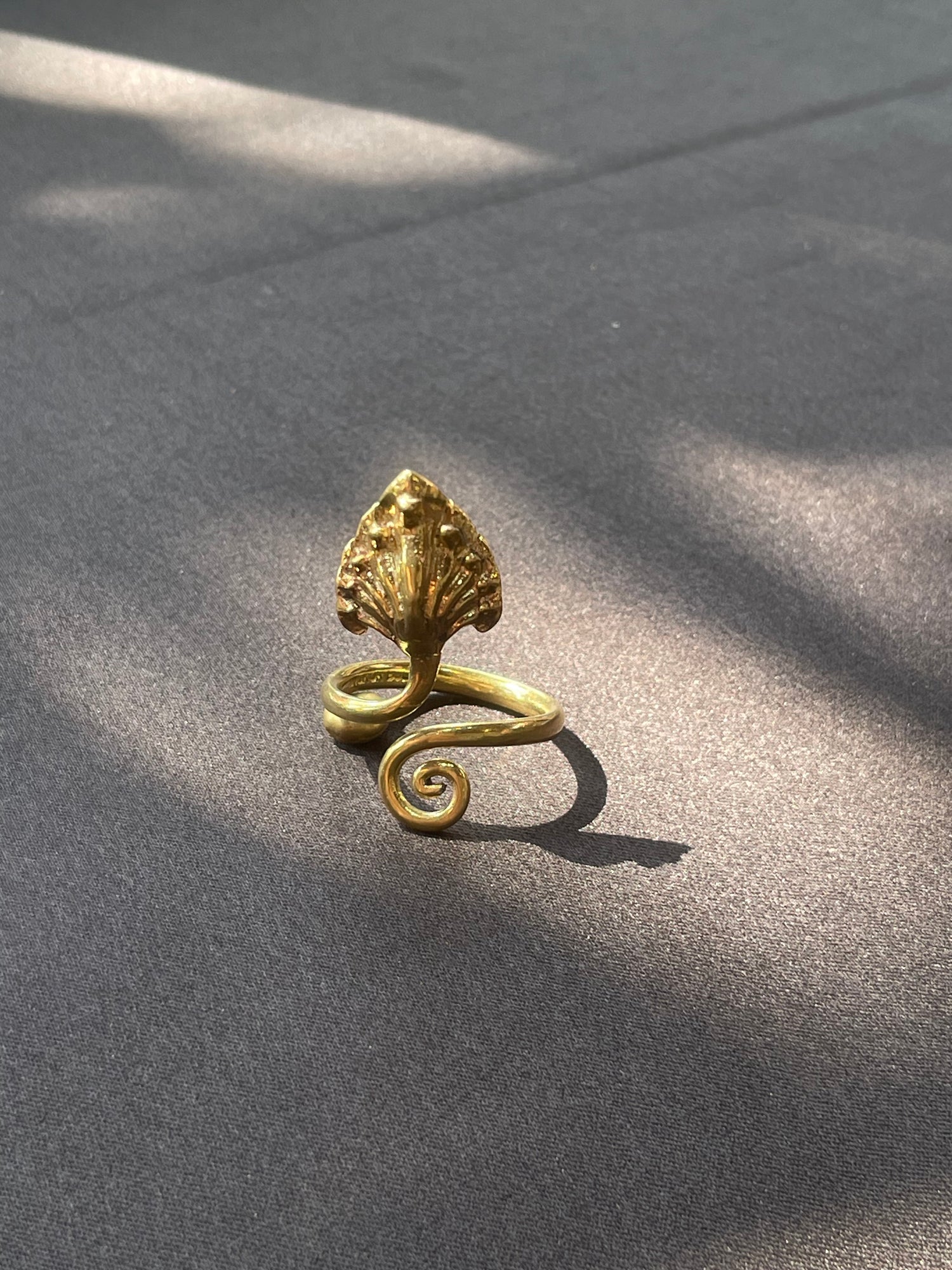 Cette bague Neak dont le nom signifie "serpent Naga, gardien des eaux et protecteur dans la mythologie khmère" en khmer est sculptée à la main en Laiton issu de douilles de balles recyclées. Délicate et résistante, elle s'adapte à la plupart des tailles de doigt et se porte seule ou superposée pour un effet affirmé. Sa finition soignée reflète l'attention portée à chaque détail dans l'atelier de Say Sieng à Siem Reap.