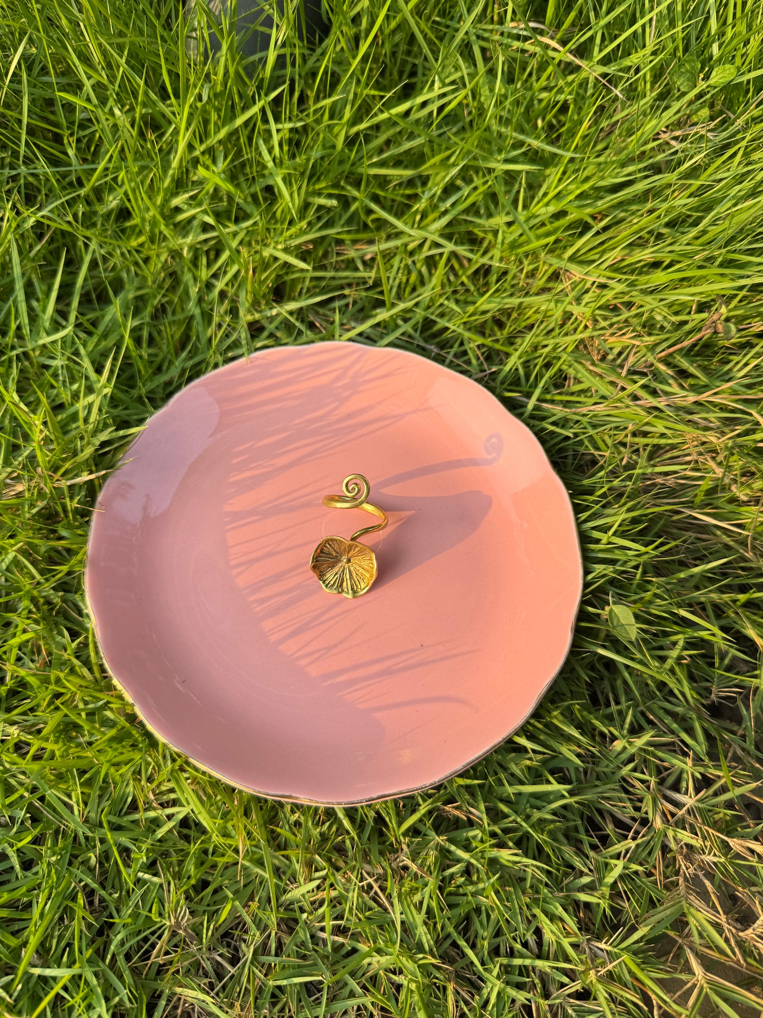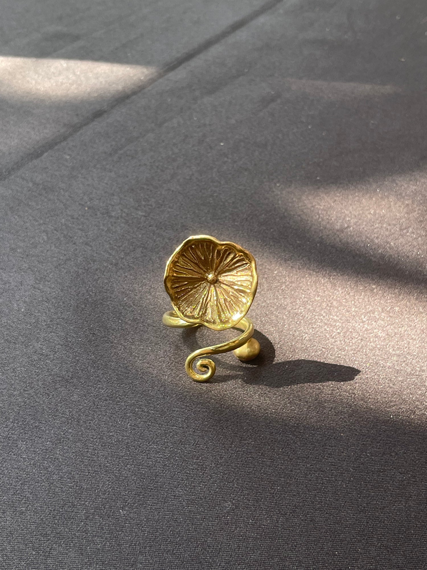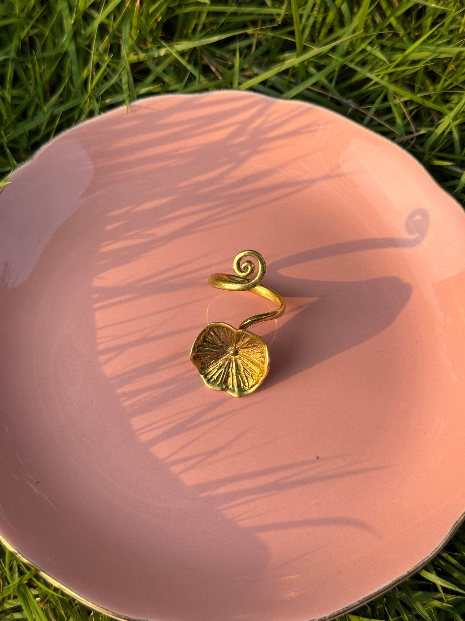 Cette bague Sluek Chhouk dont le nom signifie "feuille de lotus" en khmer est sculptée à la main en Laiton issu de douilles de balles recyclées. Délicate et résistante, elle s'adapte à la plupart des tailles de doigt et se porte seule ou superposée pour un effet affirmé. Sa finition soignée reflète l'attention portée à chaque détail dans l'atelier de Say Sieng à Siem Reap.